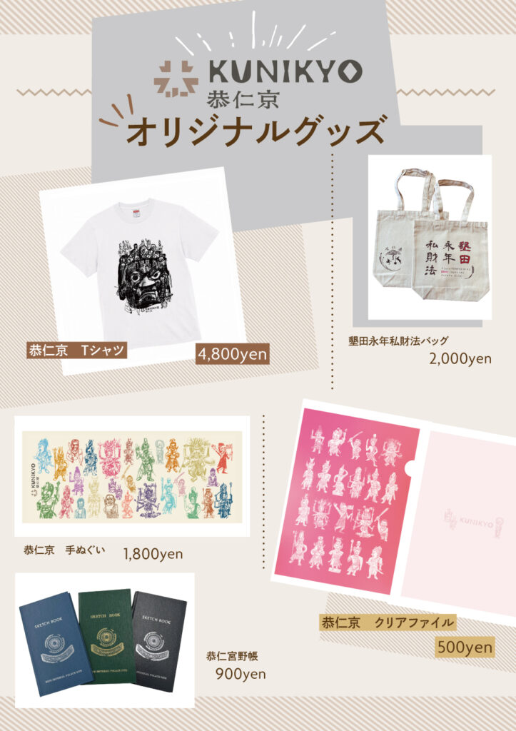 - オリジナルグッズ販売(Tシャツ、手ぬぐい、野帳、バッグ、クリアファイルなど)
